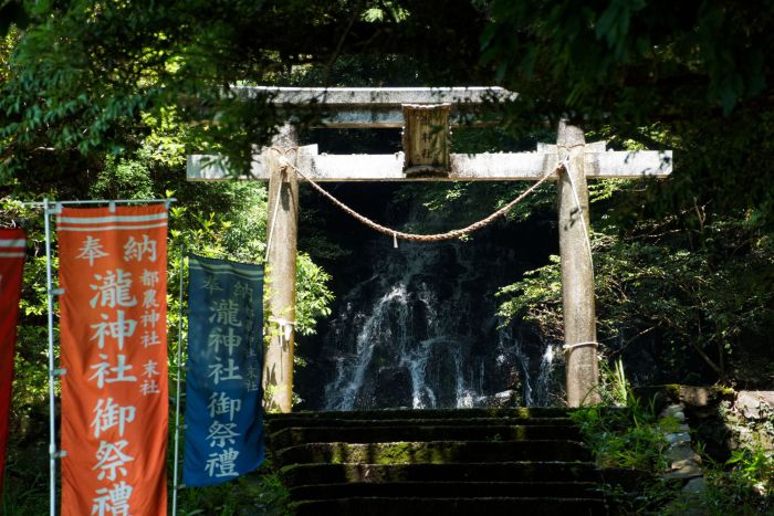 社殿背後に不動の滝があり、都農神社の奥宮とも伝えられる。明細帳には耳病平癒の神としての信仰が記載されている。」