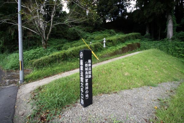 | 薩摩迫館大手口跡の標柱が建っているところか |
