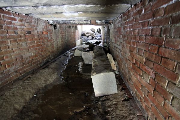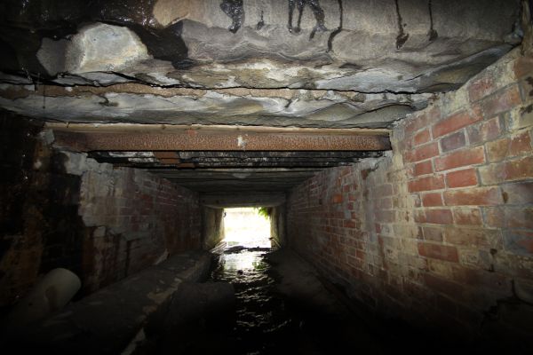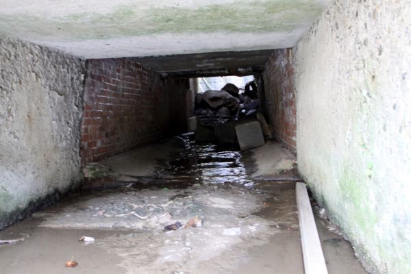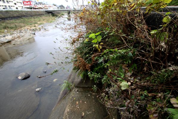 | 上流側2本は桁石が欠落しているため、鋼矢板が渡してあります |