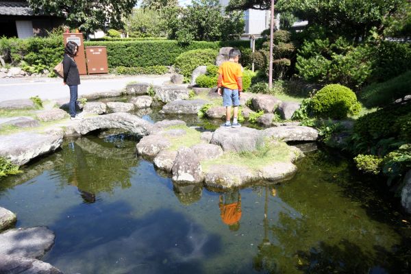 武家屋敷の庭園に架かる桁橋のうち右側の1基