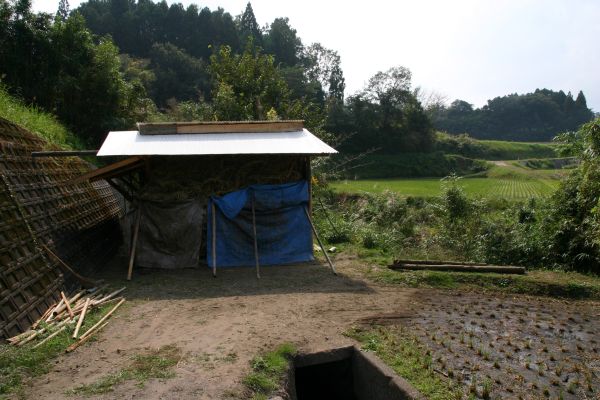 この小屋の左側を通ってまっすぐ進むと川におりることができます