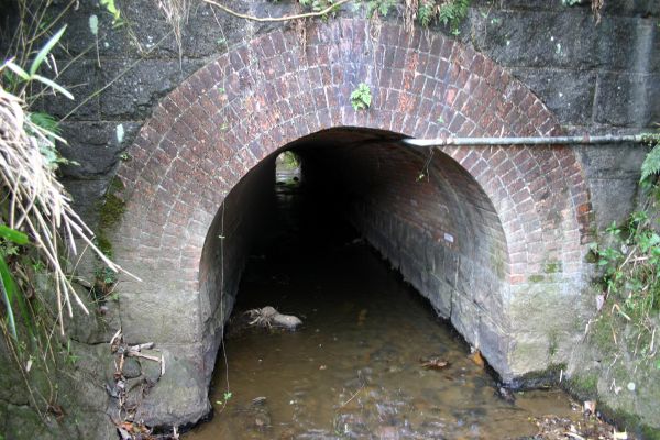 下流側は高崎麓小学校の裏手の藪の中に流れています