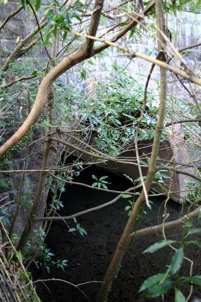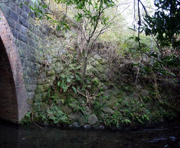 下流右岸側の竹薮を掻き分けて進むとレンガ製のアーチが見えました