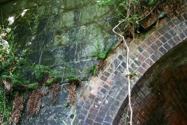 この場所も未チェックポイントでした。半信半疑で藪から覗くと、煉瓦が見えました。