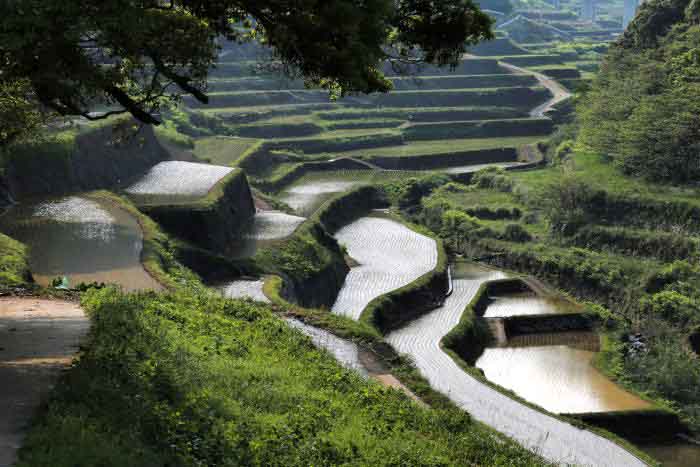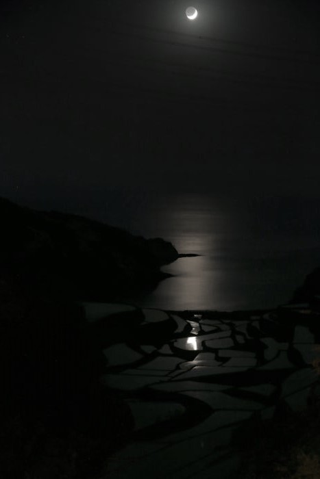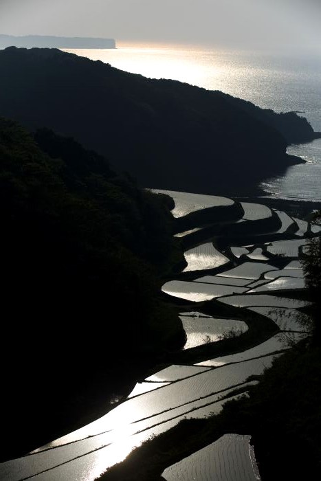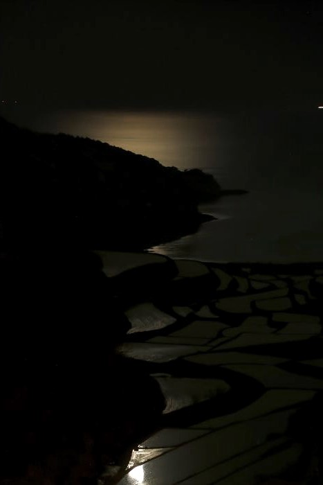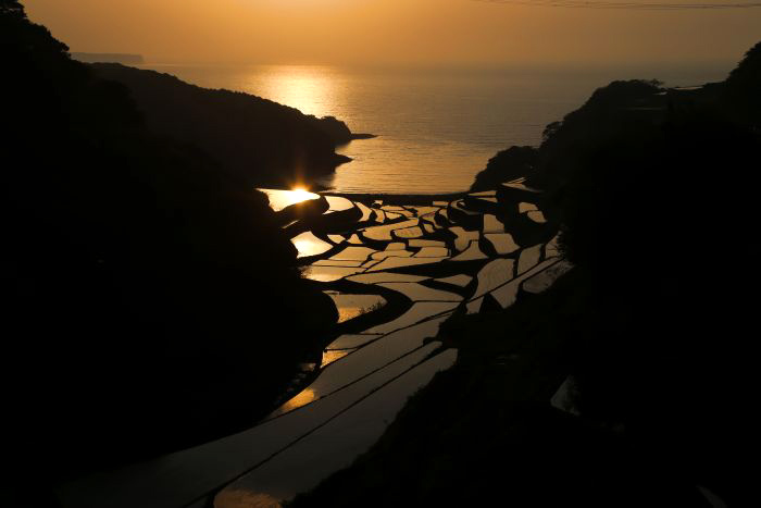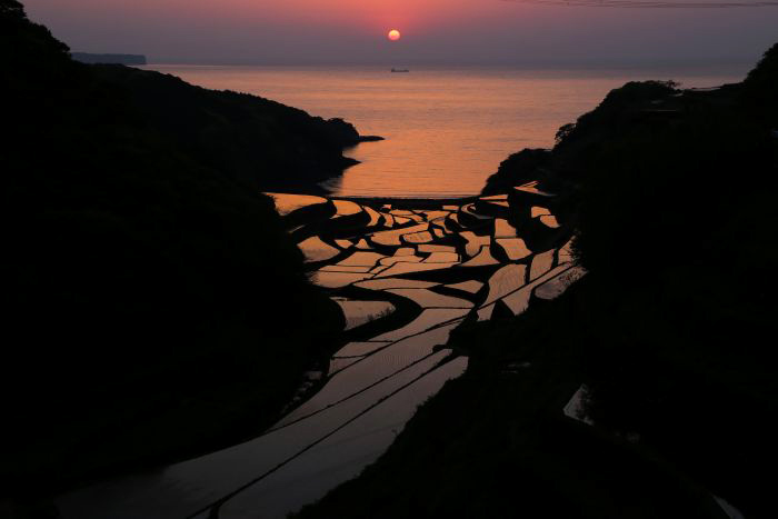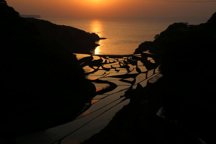 さらに日が傾き、棚田がオレンジ色に染まってきました 18時25分