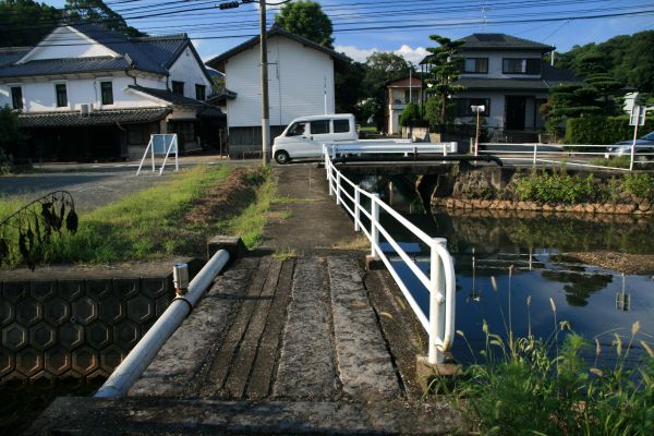 近くにおられた方にお話を伺いました。左手奥の建物は旧長崎街道、北方宿本陣跡の建物で、築178年。左手前の空き地は北方宿脇本陣跡、今車が通っているところは構口、この橋が架かっているのは川添川といい、龍造寺氏と武雄後藤氏との戦の際、龍造寺氏により掘られた壕の跡だそうです。