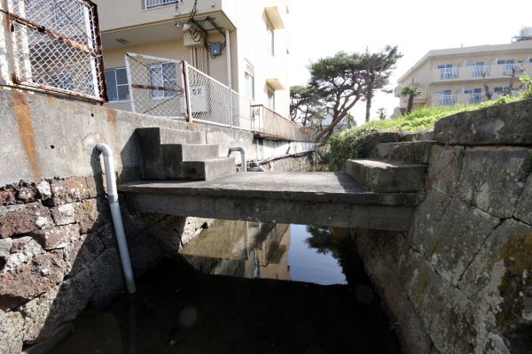 本堂橋から川床に降りて、南側を見ると石桁橋が架かっていました