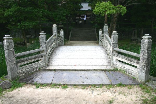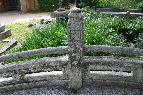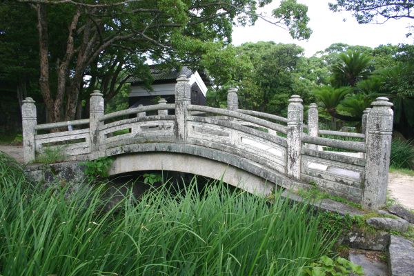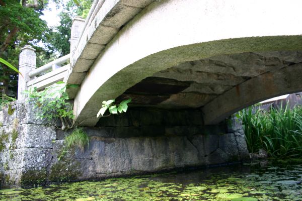「嘉永2(1849)年江向に新築された明倫館には、多くの藩校と同じように聖廟の前に水を巡らし、その中央に石橋が架けてあった。半水は半池ともいい、中国上代の形式を模倣したもので、諸侯の学校であることの象徴である。半とは聖廟周囲の南半分にしか水がないことを意味している。橋は花崗岩で造られており、長さ4.05m、幅員3.15mの直橋で、橋脚はなく両岸の石垣の橋台に2本のアーチ式橋桁を渡し、その上に10個の短冊石を横に並べて造られており、中国風のデザインを施した太鼓橋である。」