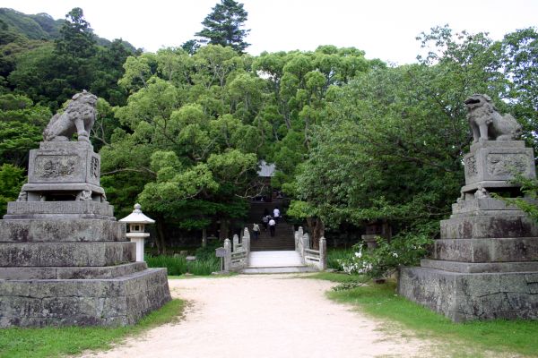 「旧県社。祭神は、毛利元就・毛利隆元・毛利輝元・毛利敬親・毛利元徳。明治11年(1878)、萩町及び付近の有志が発起し、広く毛利家にゆかりのあるものの賛同を得て、萩城跡本丸内に山口の豊永(祭神毛利元就)・野田(祭神毛利敬親)両神社の遥拝所を創建した。翌12年、この遥拝所を山口にある両神社の分社とし、指月神社と称した。同15年県社に列せられ、志都岐山神社と改められた。同33年、祭神を元就・隆元・輝元・敬親・元徳の5柱とし、初代から12代まで萩藩主を配祀した。」