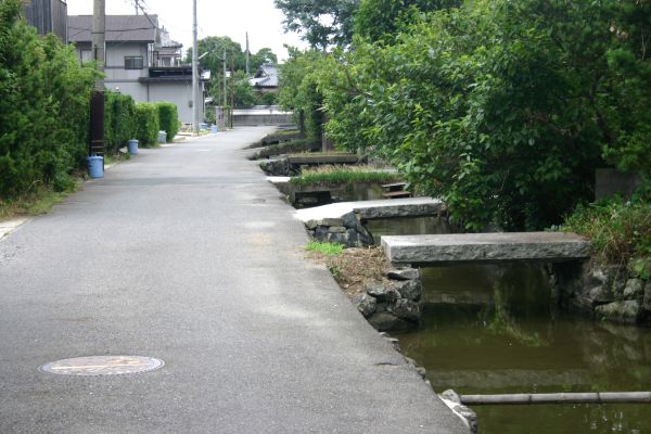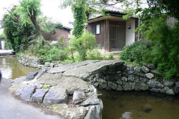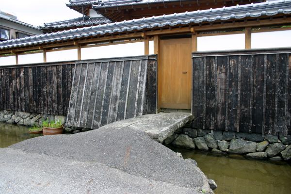 「大川より分岐するこの川は、城下町への物資供給水路、農業用水路として重要な役割を果たしていました。川沿いの家では川の水を引き込んだ洗い場を設け炊事洗濯などをする場所として利用していました。今も川舟の向きを変えた舟廻しや、舟が通りやすいように両岸より高く持ち上げられた石橋がみられ昔日の面影を留めています。昔は大溝といわれていましたが、明和年間(1781年〜1789年)に江向の川端に藍場を設けたため、いつの間にか藍場川と呼ばれるようになりました。」