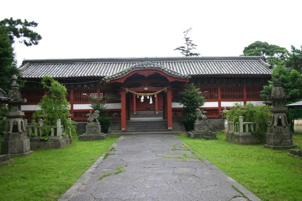 「当社は、鎌倉時代の長門守護職、佐々木四郎高綱が大宰府より勧請したといわれ、享保5年(1720年)藩主毛利吉元の時、現在地に再興されました。秋の祭礼は萩二大祭の一つで、大名行列、踊り車等の奉納があって賑わいます。