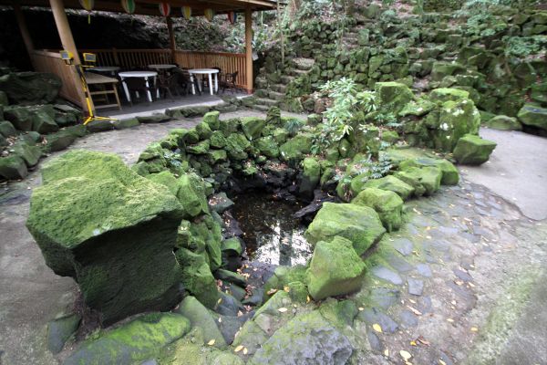 風穴からは、真夏でも13℃くらいの冷たい風が流れている。これは、笠山を形造っている多孔質の岩石に雨水や海水が浸透し、その水が蒸発するときに拾遺の熱を奪い、温度を下げるためだといわれている。」