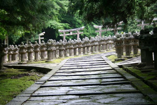 これらの墓は明治以降に移されたものや一部の新墓を除いて、いずれも花こう岩製の五輪塔形である。なかでも藩主夫妻の墓は高さ4.5mの大形である。鳥居や多数の石燈籠は、家臣をはじめゆかりの深い人びとが寄進したものである。」