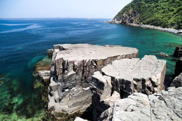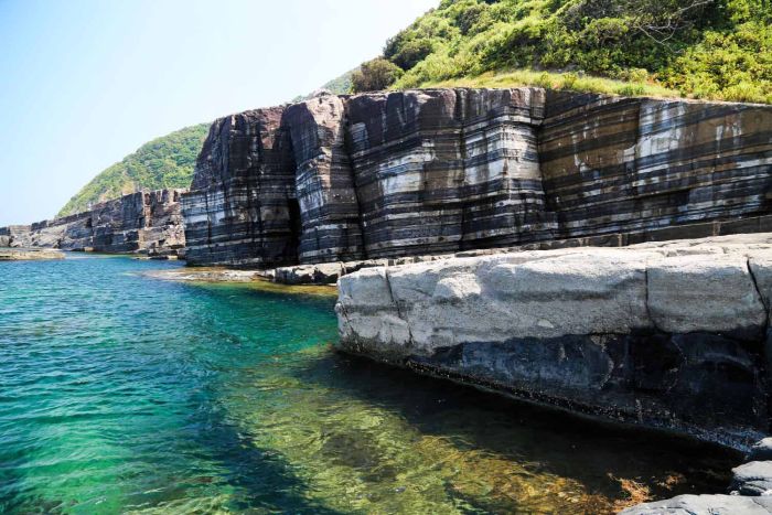 その熱の影響を受けて、この斑れい岩に接触する部分の須佐層群がホルンフェルス化しました。