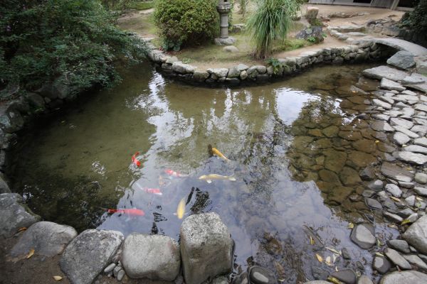 川の水を庭に引き込んで、池を作っています。また、他の水がどこに流れているかに注目してください。