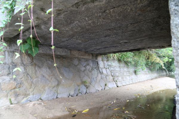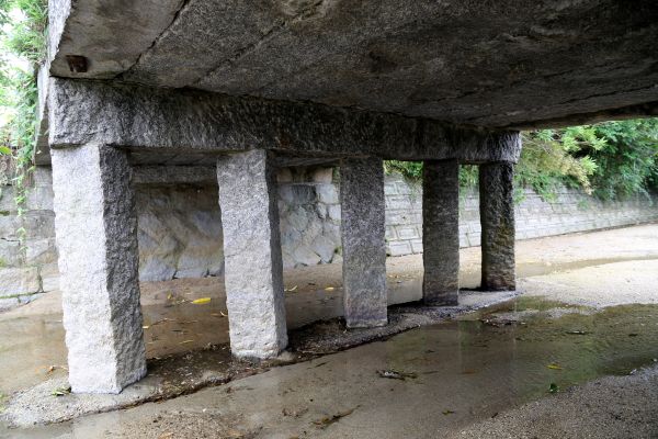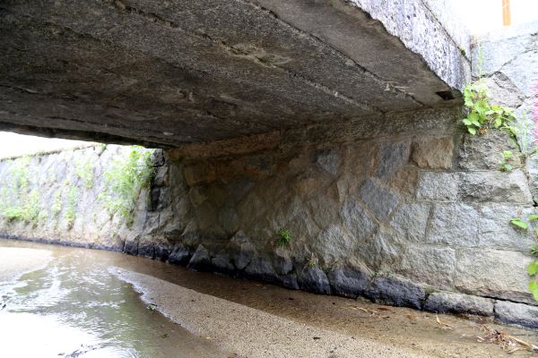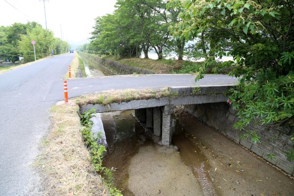 「ニ階川は、大野毛利氏の平生開作(1651〜1658)の時作られたものです。干拓はまず土手を作り排水のための川(大内川)をつけましたが、干拓地が低いため海水面との関係で川底は干拓地より高く造られました。このため、大野側の排水が不能となり川底を暗渠で下側の川へ流す方法が工夫され、これを二階川と呼ぶようにになりました。