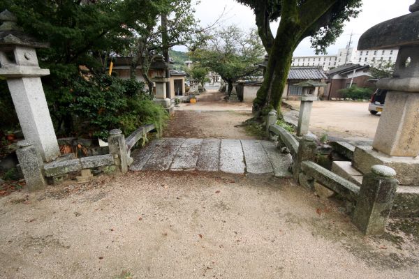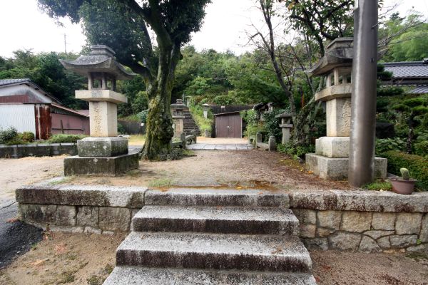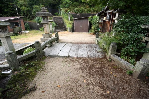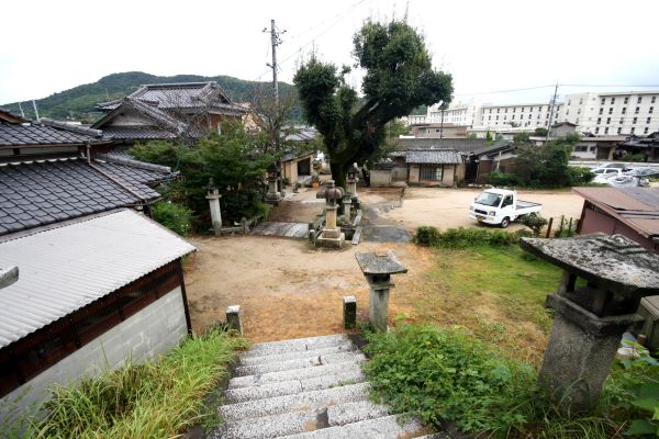 右手は民家、突き当たりは倉庫、その左側を階段が続きます