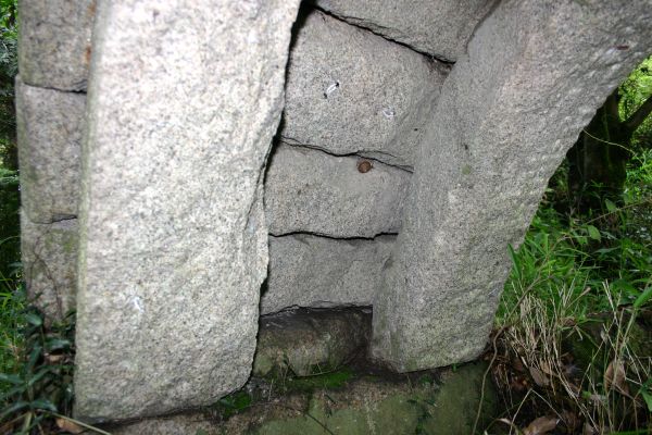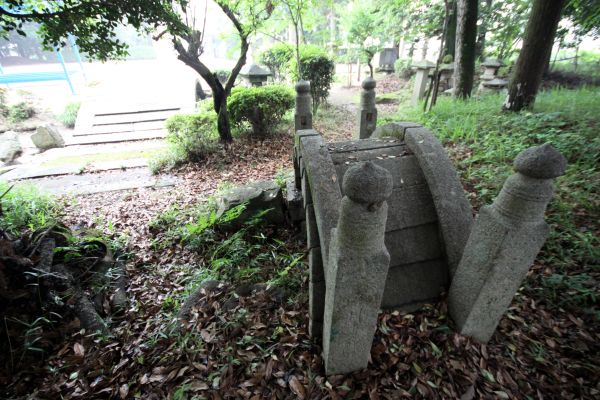 | 防府市大字高井 剣神社 橋長:2.4m 橋幅:1.0m 拱矢:0.6m 架設:安政2年(1855) |