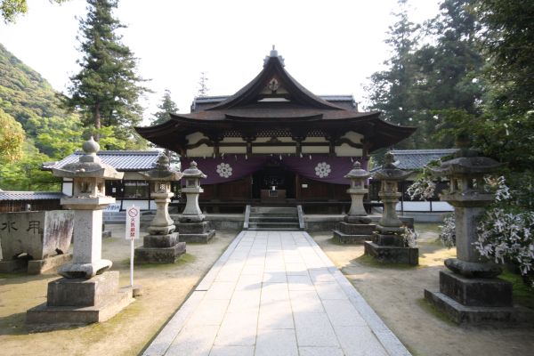 神門は、小型の四脚門で冠木中央に古川家家紋があり、拝殿は、入母屋造妻入りで背面に幣殿が張り出し、本殿は三間社流造で正面に軒唐破風、千鳥破風が付されています。