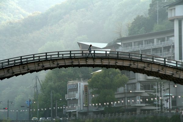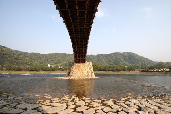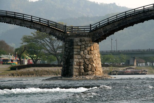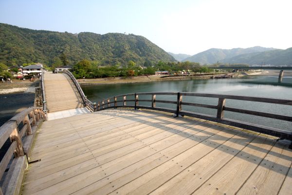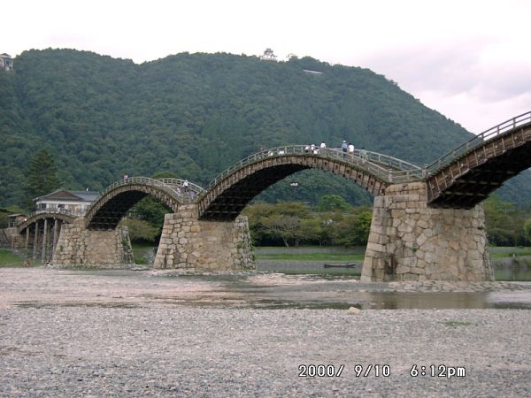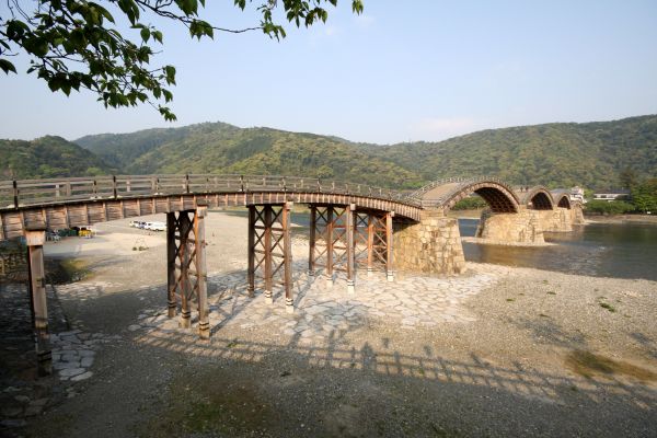 「この橋は、延宝元年(1673年)時の藩主吉川広嘉公が錦川出水のたびに交通が途絶されるのを憂い大洪水にも流されない橋を架けて住民の苦難を救おうとして構築したもので、日本三奇橋のひとつとして名高いばかりでなく、木造の五連の橋としては、世界にもその類例がありません。300数年前機械器具の乏しい時代に木材をもって組み立て、しかもその橋台の築造や、橋台の崩壊を防ぐための河床固め工事等発達した現代土木工学の学理にも完全に一致していることは全く驚嘆に価するものがあります。