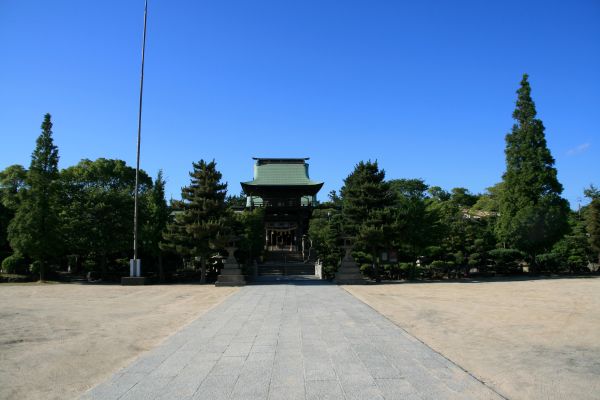 「当八幡宮は平治元年10月本島開拓の主祖河野通次“人皇51代平城天皇の子孫三位中将大江政房の嫡子豫州伊豫の国勝山城主で後白河天皇の御代保元の乱に敗退一党を率い保元2年来島”自ら祭主となり宇佐神宮より勧請祭祀せられたものであります一名灘八幡といった文に宮の沖合いを通過する船は必ず半帆の礼をとったと言われる事から造船漁業関係者の崇敬が厚く又安産の神として別名子安八幡宮と崇められ御霊験あらたかな神様であります。