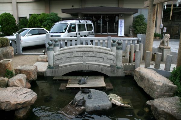 平成元年 氏子崇敬者の厚い御奉賛により 亀山八幡宮御鎮座1130年記念事業として境内を整備し お亀明神社を再建し池を整え玉垣をめぐらす