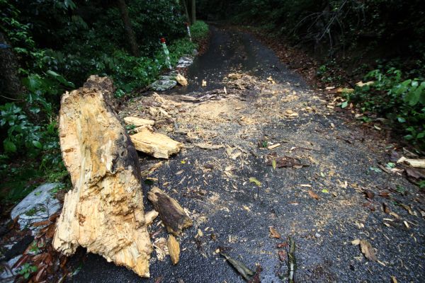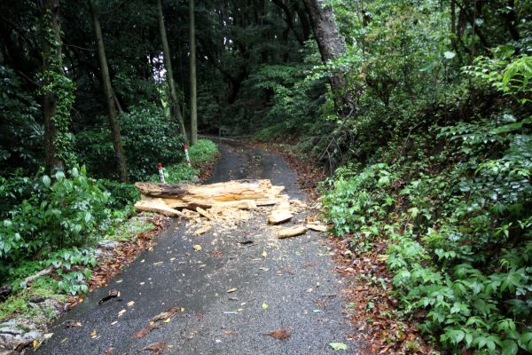 直径15cmくらいの竹が倒れかかっており、なんとかナタで切って通りました