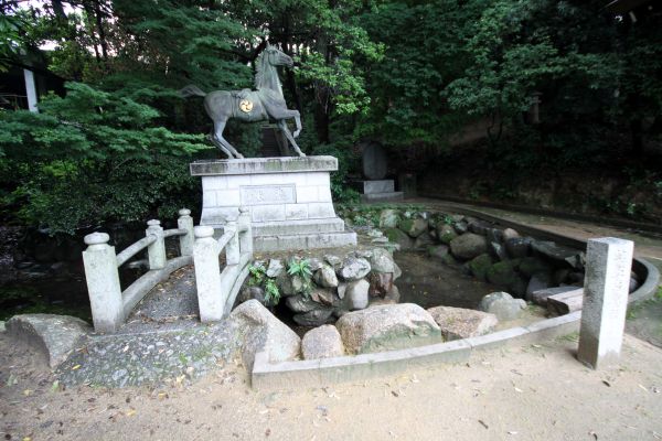 「この神馬は、故高崎卯吉氏の寄進によるものであるが、去る大東亜戦争の際供出されたために、この度故人の遺志を継承して、左記縁故者の篤志によって復元して寄進されたものである。」