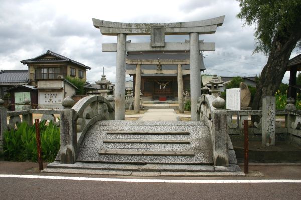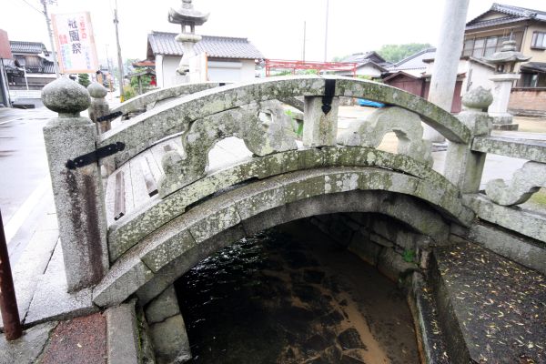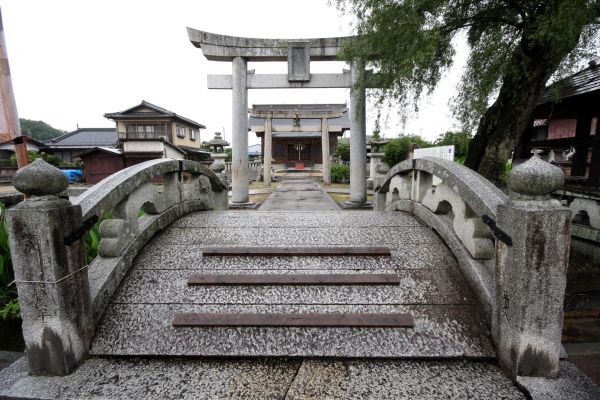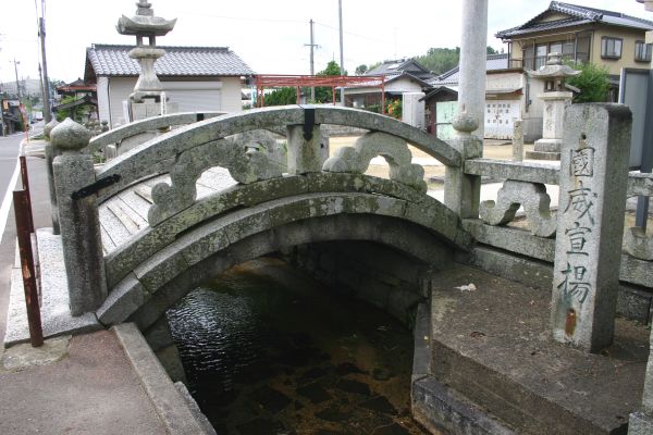 嘉永5年(1852)8月の千六百五十年式年祭で、社殿境内の新造成がされ、玉垣やそり橋、高灯ろう(住吉社の特色で海上安全の灯台を擬製)などができました。神功皇后が軍船48艘を造るために切られたという境内にあるクスノキ古樹の巨木伝説から、「船木村」「楠町」などの地名発祥の地とされています。一の鳥居の東わきに、明治中期ころ造立の芭蕉の俳句塚があり、「春立ってまだ九日の野山哉」と刻んであります。」