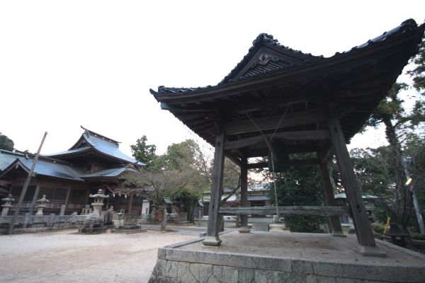 大内氏は滅亡し澄清寺も廃退したので当八幡宮が買い求めました。太平洋戦争中は小郡国民学校の警鐘として使用され供出をまぬがれました。」