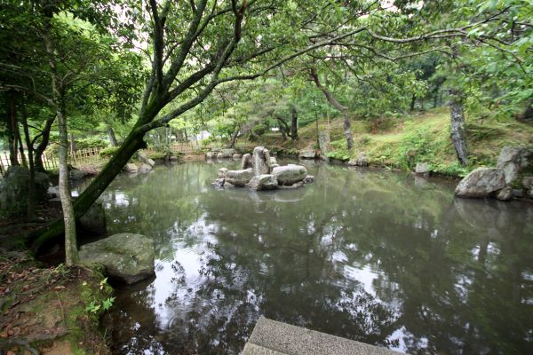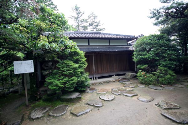 「文久三年(1863)四月、萩藩主毛利敬親は幕末の政情に処するため藩庁を萩から山口に移し、今の県庁のところに政治堂を建てた。そのとき政治堂の近くの一露山の麓に茶室を設け、一露山の一の字を省いて露山堂と名付けたのがこの建物である。敬親は茶事にことよせて身分に関係なく、この一室に集めて討幕王政復古の大業について密儀を凝らした。廃藩の後は他に移築されて持主も数人かわり、腐朽が甚だしかった。これを知った敬親の側近に長く勤めた品川弥二郎は、その由緒ある建物が朽ち果てるのを惜しんで、有志に図り、資を集めてその建物を買収し、明治二四年四月現在地に移したものである。茶室周囲の庭園はこのとき造られたものである。