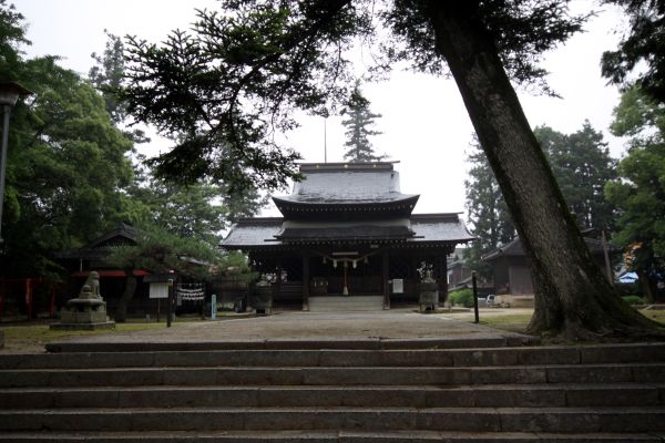 「本社は、今から六〇〇余年前に大内弘世が京都から勧請したもので素戔嗚尊・稲田姫命・手名槌命・足名槌命を祭神としている