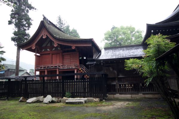 本殿は三間社流造りで、屋根は檜皮葺である。本殿の周囲に配されている、十三個の変化に富んだ蟇股は、珍稀な図柄とともに室町時代の特色をよくあらわしている。