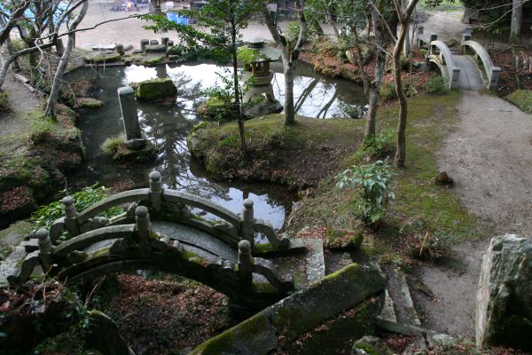 「本社は今から620余年前(慶安6年1373)に、大内弘世が京都の北野天神を勧請し北野小路にまつっていたものを元和4年(1618)に毛利秀就がこの地に遷宮した。祭神は菅原道真で福部童子を配神としている。 本社殿は室町時代に建立されたものを、ここに移築したものである。本殿内にある宝物殿の板に「天文十六年云々」の墨書があるので、本殿の建立もその頃と考えられる。本殿は三間社入母屋造り、拝殿は二重入母屋楼門造りでともに室町時代の様式をよく伝えている建物である。本殿の正面にある三つの蟇股にそれぞれ松竹梅の彫刻が見られるが、これはわが国で建築の装飾に松竹梅の組み合わせをとりいれた最も時代の古いものとして有名である。 社宝として、重要文化財「紙本墨画天神図」がある。 本殿の例祭は、11月25日で、23日からの神幸式には大拝司・花神子参向この古式神事が執行され、山口天神祭と称されている盛大な祭りである。」 山口県教育委員会 山口市教育委員会 |