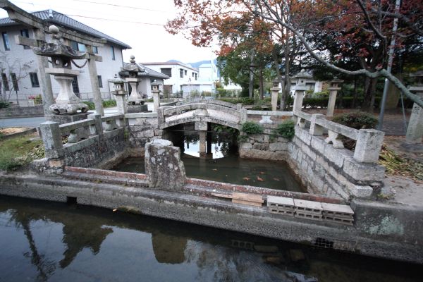 鳥居をくぐると、池に架かっています