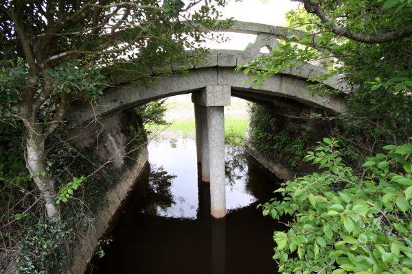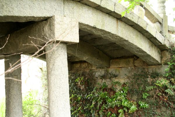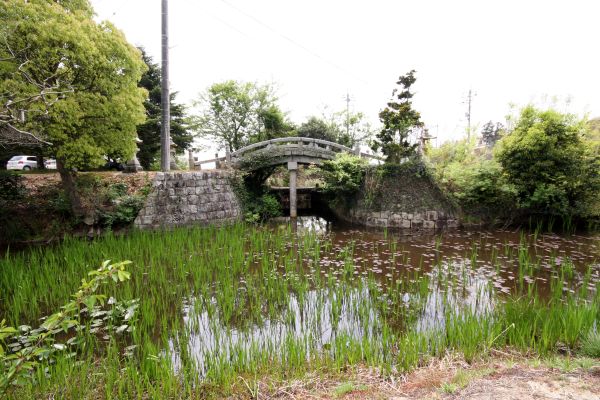 壱の橋から石碑を過ぎると池に弐の橋が架かっています