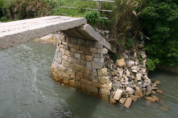 橋台が崩壊しかかっています、そのため迫石の根入れ状況がよくわかります。