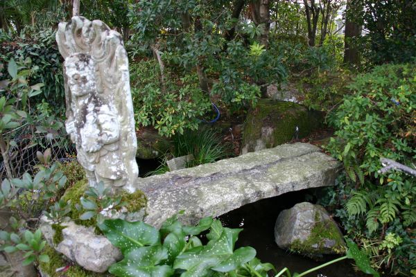 館は、百間四方の堀と土塁に囲まれて中に造られていたと言われています。現在はほとんどその面影を見ることは出来ませんが、山門の東側竹薮の中に土塁の一部を見ることができます。」