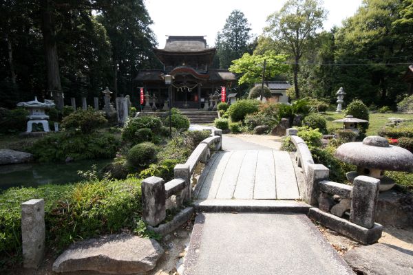 拝殿の建立時期は、寛政三年(1791)九月六日の棟札があり、この時期のものと思われる。楼門形式の入母屋造りで、左右に切妻造りの翼廊を付し、正面に時代相応の向唐破風の向拝がある。楼門を拝殿に兼ねた造り方は山口地方独特な形式であって、山口地方独特な形式であって、山口近郷には同形式のものが多く見られる。」 |