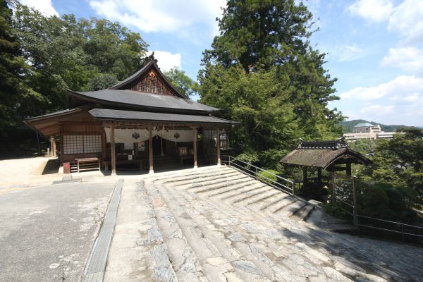 「本社は、永正十五年(1518)に大内義興が伊勢から神霊を勧請して創建した古社である。義興は京都で足利幕府の守護代をつとめた頃、伊勢大神宮に参拝し、その荘厳な神霊にうたれ、ぜひこの神霊を山口にもお迎えしたいという心をおこした。そして帰国後この高嶺の麓を神域と定め、内宮、外宮の社殿を造営したのである。